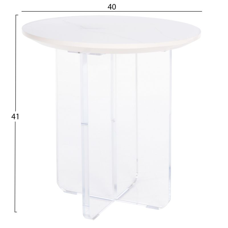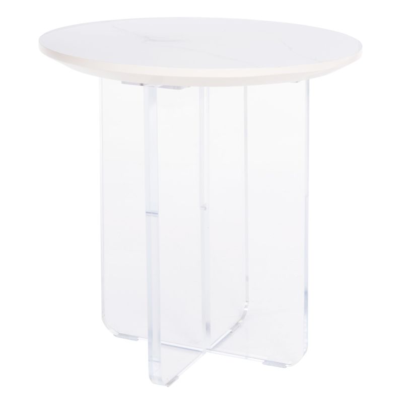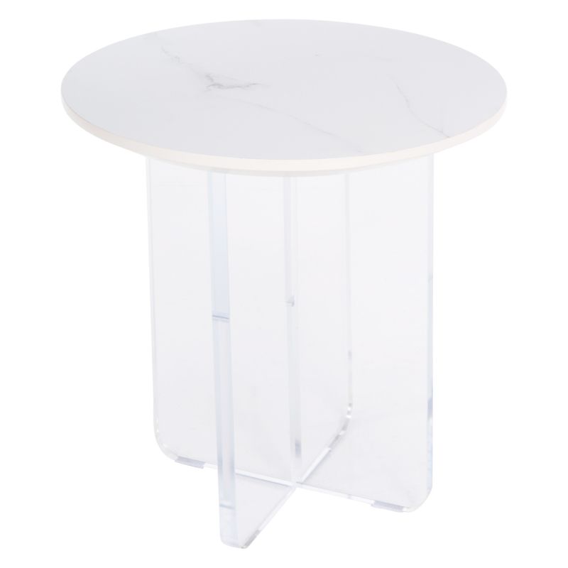ACRYLON е ниска кръгла холна маса в цвят БЯЛ МРАМОР. Красивият и скосен плот лежи (завинтен) върху прозрачни АКРИЛНИ крака. Тази маса ще обнови естетически вашата всекидневна, докато съчетава много различни стилове и цветове в околното пространство.