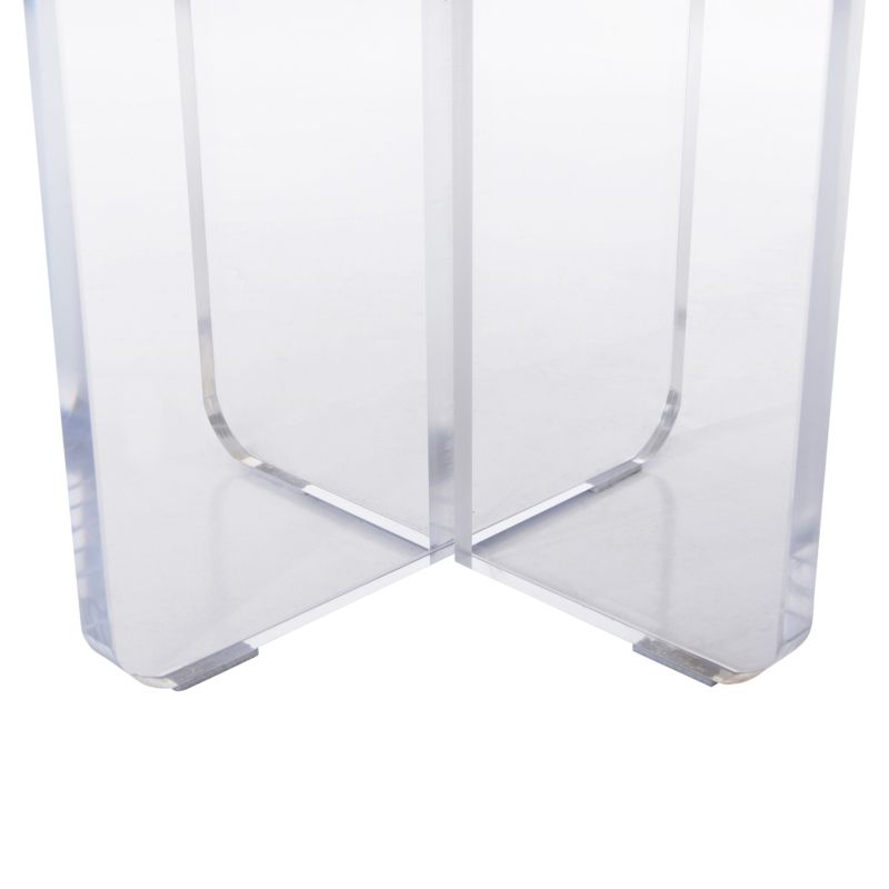 Краката са акрилни. Акрилът, известен също като плексиглас, е вид устойчива на разбиване, гъвкава пластмаса - този материал е здрав и е малко вероятно да се счупи. Акрилът също има тенденция да бъде дори по-прозрачен от стъклото и произлиза от полипропиленова пластмаса.