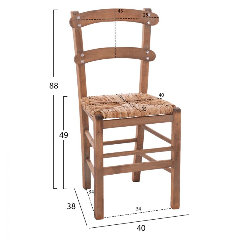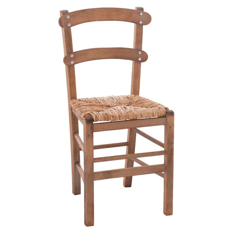 Традиционен стол от масивно дърво импрегниран орех със слама.