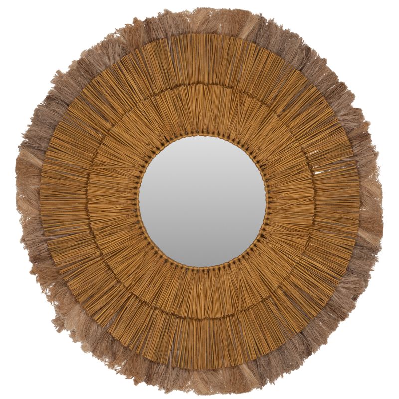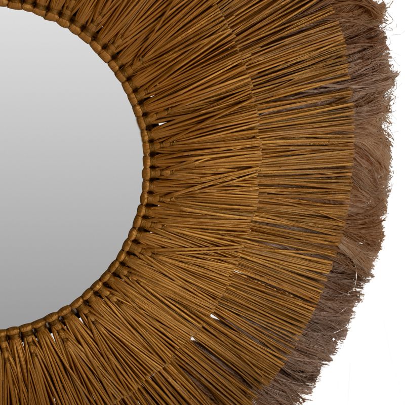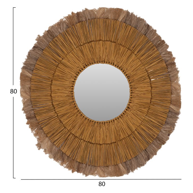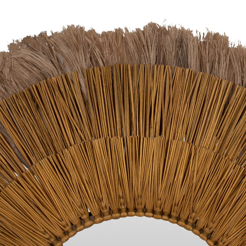СТЕННО ОГЛЕДАЛО КРЪГЛО МЕНДОНГ ТРЕВА И ВЛАКНА АБАКА В НАТУРАЛНО И ЗЛАТНО 80x4x80Hcm.HM7797