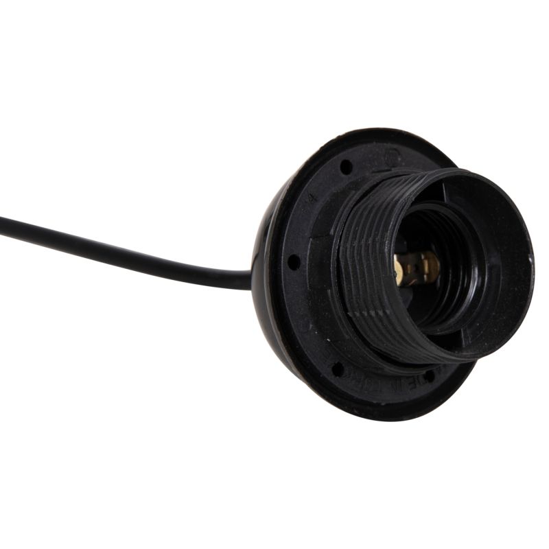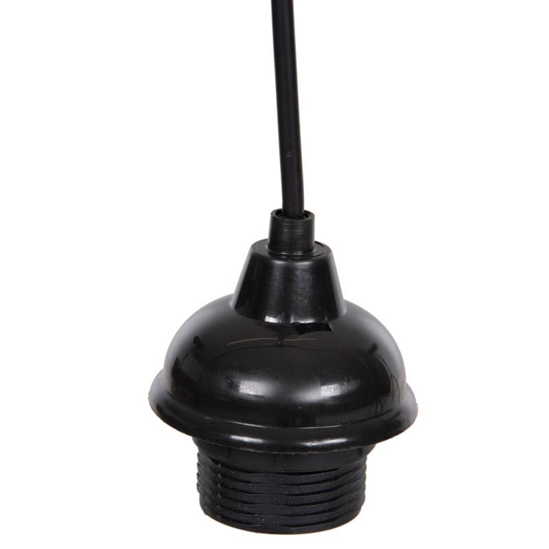 HM4187 е прост кабел за окачване (окачване) за таванни висулки, с таванна капачка и гнездо, направени от пластмаса. Всички части са в ЧЕРЕН цвят. Фасунгата приема лампа с резба Е27, а дължината на кабела е 90см.