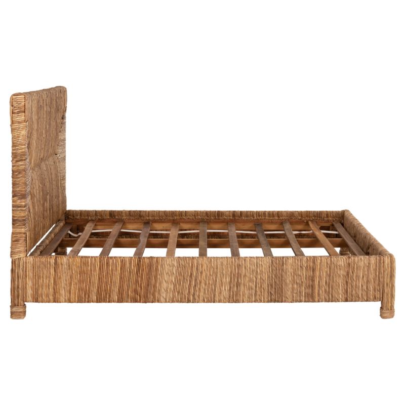 В "THAW" традиционният вариант на дървеното легло е допълнително подсилен с покривката от папур от листа на бананово дърво в НАТУРАЛЕН цвят, която е и доминиращият елемент на това легло. Особено високата табла привлича окото като магнит!