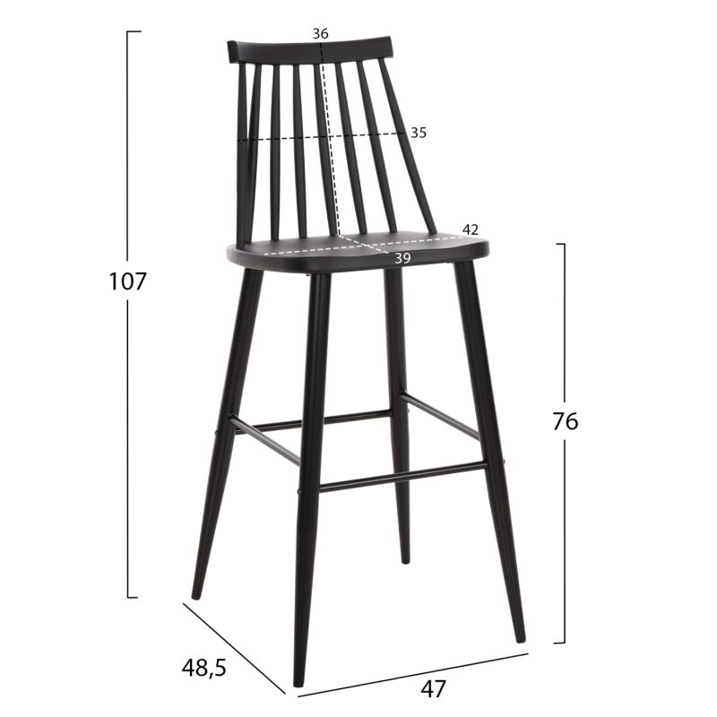 БАР СТОЛ ВИСОКА СЕДАЛКА VANESSA HM8459.12 ЧЕРЕН PP И ЧЕРНИ МЕТАЛНИ КРАКА 47x48,5x107Hcm.