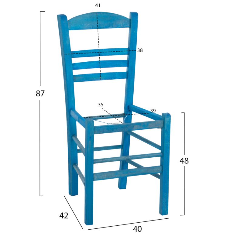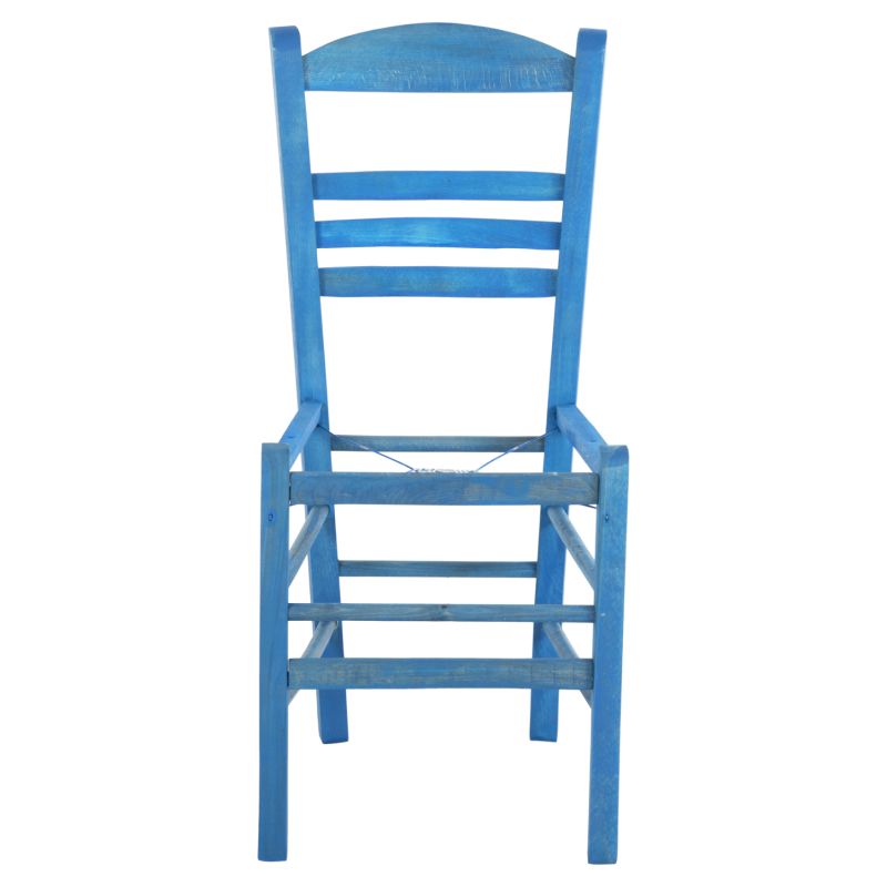 Столът JHETT за професионална употреба е традиционен стол, изработен от букова дървесина и се доставя в красив СИН цвят. Естетически е подходящ за таверна, кафене, но и като цяло за декорирани пространства в класическия гръцки традиционен стил. Доставя се само рамката.