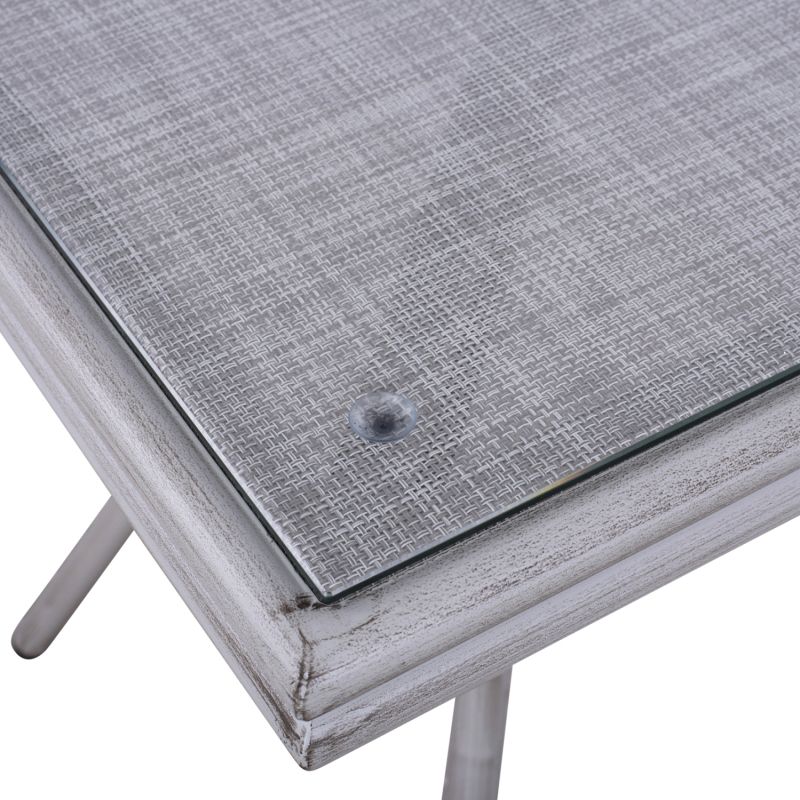 Алуминиева маса 70X70X76 Бамбукова визия HM5568.01 Бяла патина със стъкло