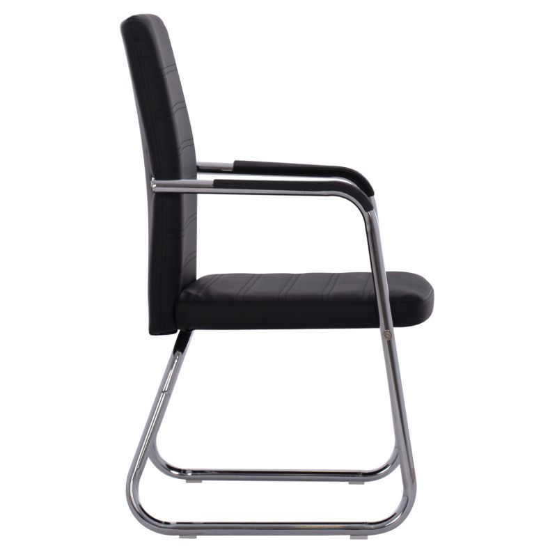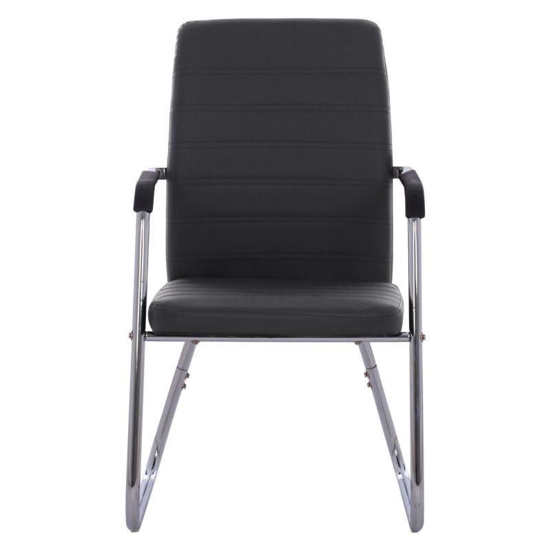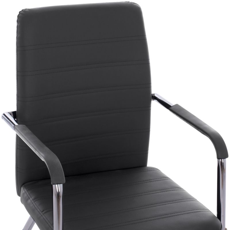 Накарайте вашите гости или колеги да се чувстват комфортно с креслото DALEY. Това е офис кресло за сътрудничество в черно със семпъл дизайн, но определено красиво. Той е хромиран, а седалката и облегалката са свързани заедно. Рамените са плоски и са продължение на основната рамка, създавайки по този начин красив образ, а подплатата му е раирана PU, както на седалката, така и на облегалката. Рамката на стола е с красиви извивки, докато ръцете са с поликарбонатна подплата за по-приятна текстура.