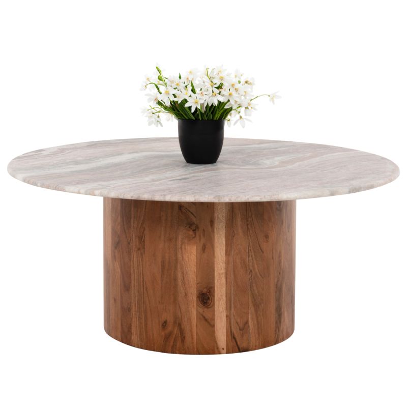 ХОЛНА МАСА FORMEL HM9672 АКАЦИЕВО ДЪРВО В НАТУРАЛНО-БЯЛ МРАМОРЕН ПЛОТ Φ80x36Hcm.