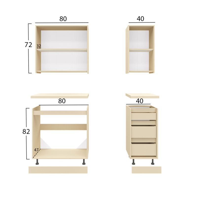 Основният строителен материал на кухнята е висококачествен меламин с дебелина 16 милиметра. Меламинът е вид дървесина под формата на ПДЧ. ПДЧ са продукти, които имат формата на панел. Като материал е много издръжлив и с голяма твърдост. Така че това е синтетичен материал с много твърда повърхност, което го прави много устойчив на драскотини, абразия и петна.