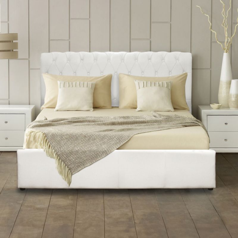 Начало ИНТЕРИОР Тапицирани спални Легло Mone HM321.02 Място за съхранение в стил Честърфийлд Бяло PUсм