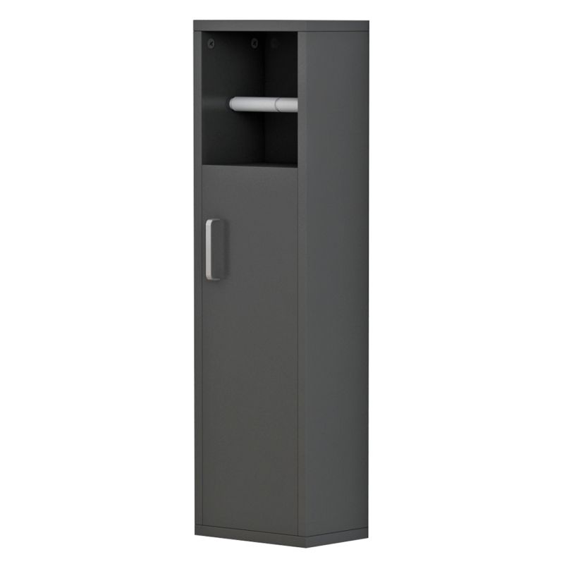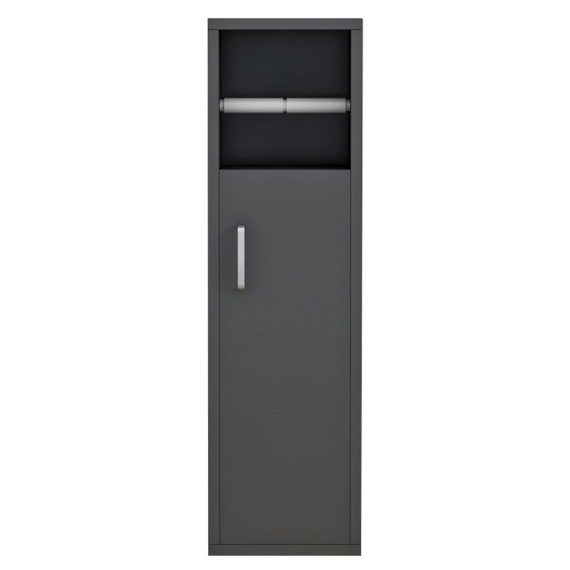 DAMIEN е тесен шкаф в цвят АНТРАЦИТ с вградена горна поставка за тоалетна хартия. Това е практична мебел, която ще направи живота ви малко по-лесен, както с пространството за съхранение, което има, така и с удобните си размери. Освен това можете да го окачите на стената, за да го предпазите от влагата на пода.