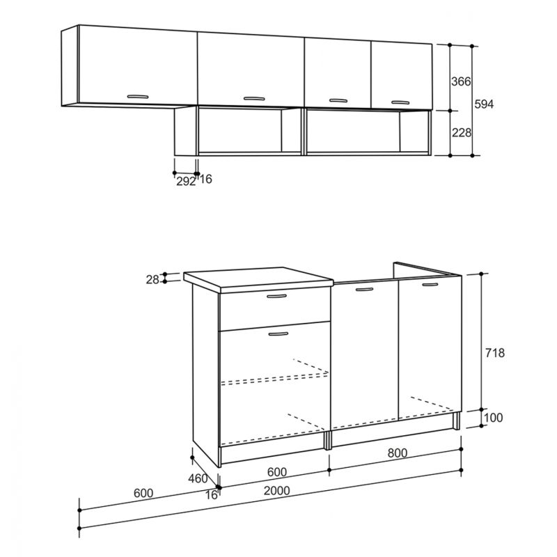 Ако търсите икономично решение, в малка, права кухня, изработена от висококачествен меламин с дебелина 16 мм, с отворени и затворени места за съхранение, шкафове, чекмеджета, в които можете да съхранявате всякакви съдове, прибори и кухненски прибори. , тогава трябва да намерите правилния продукт.