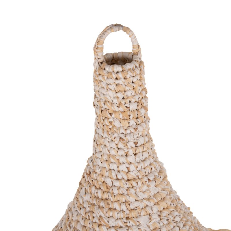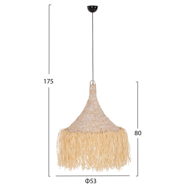 HM7816---- Ако искате да украсите вашето пространство с лампа в бохо стил с екзотични материали, това е типичен избор. Представлява единична лампа с капачка във формата на камбана с дълги ресни от изсушени влакна от палмови листа, в НАТУРАЛЕН цвят.