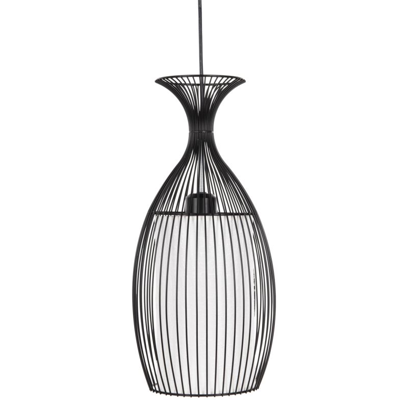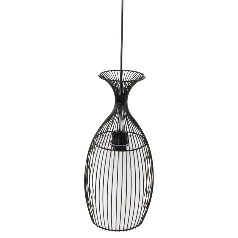 HΜ4186--- Запознайте се с новата, оригинална и елегантна висяща лампа за таван в нашата гама и завършете своята декорация. ЧЕРНАТА метална мрежеста капачка във фигура на ваза не пречи на светлината да достигне до всеки ъгъл, като по този начин прави тази висулка олицетворение на модерния дизайн в таванните лампи.