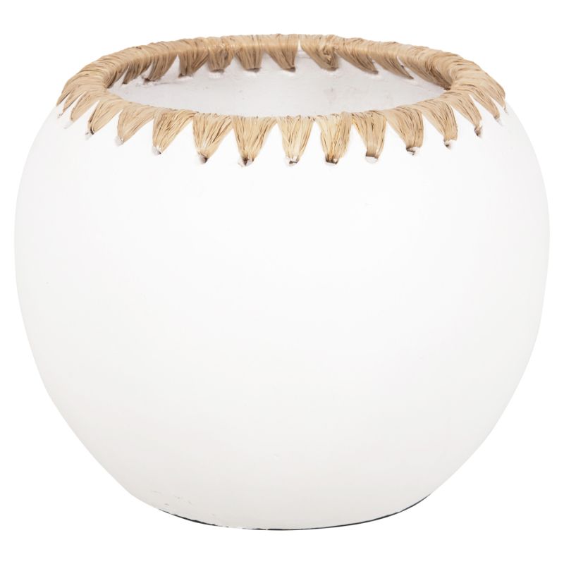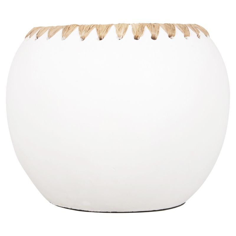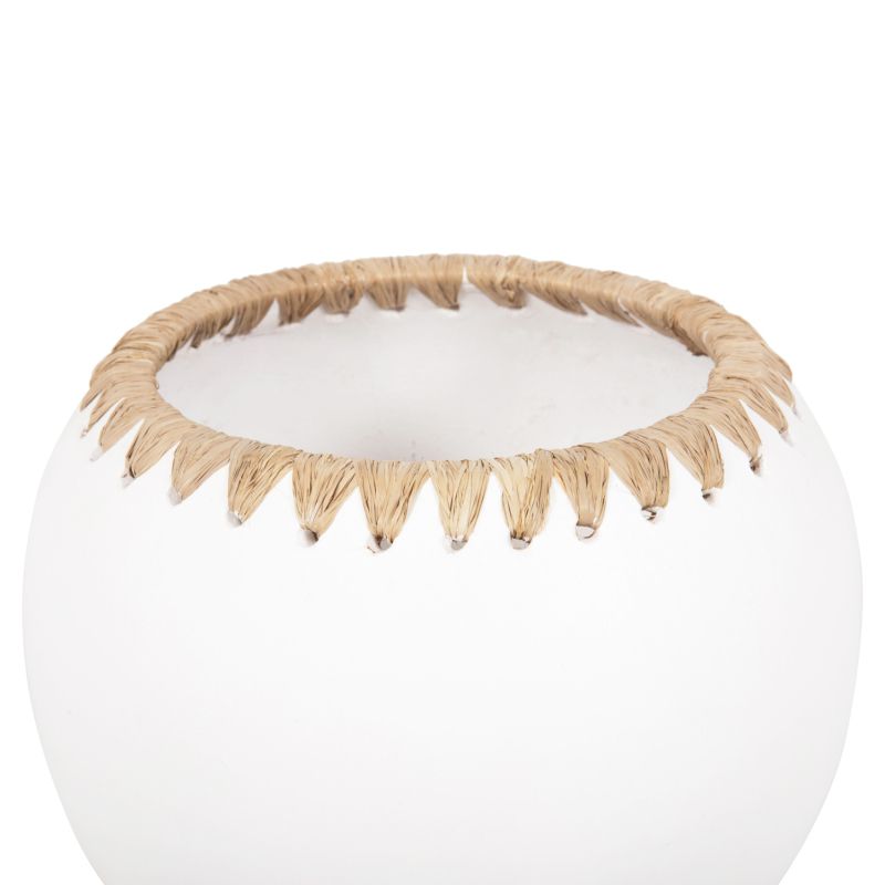ДЕКОРАТИВНА ВАЗА HM4375 ТЕРАКОТА В БЯЛО СЪС СЛАМЕНА ПЛИТКА ПО РАНИЦАТА Φ29x23Hcm.