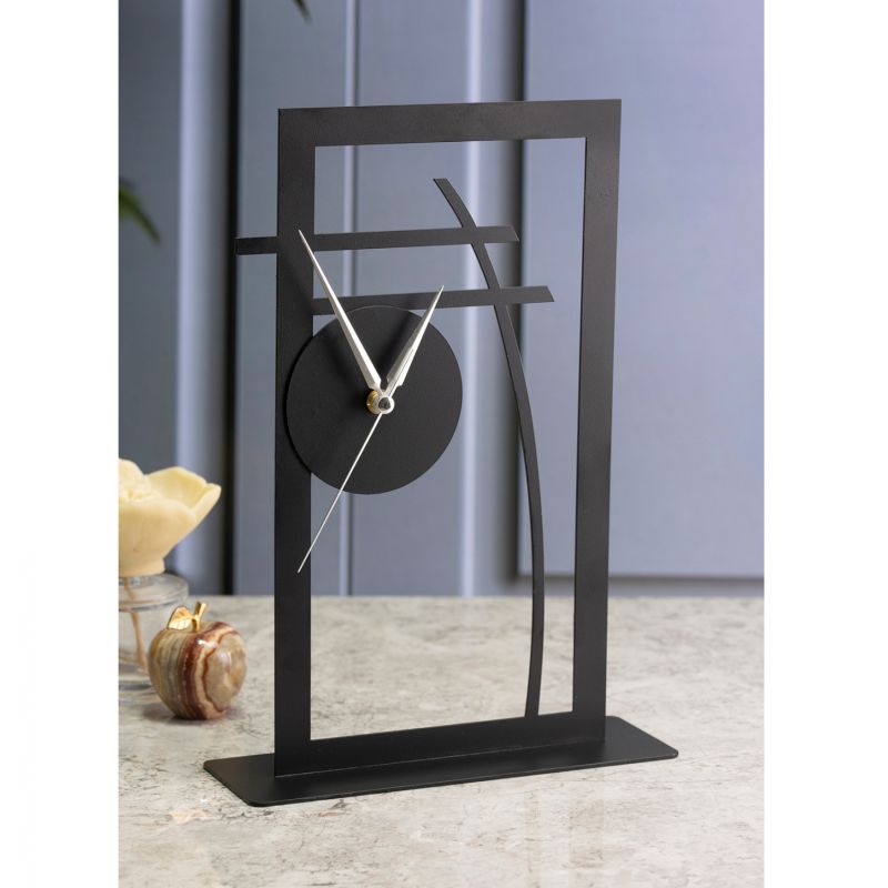 Настолен часовник в черно със сребристи детайли по индикаторите.