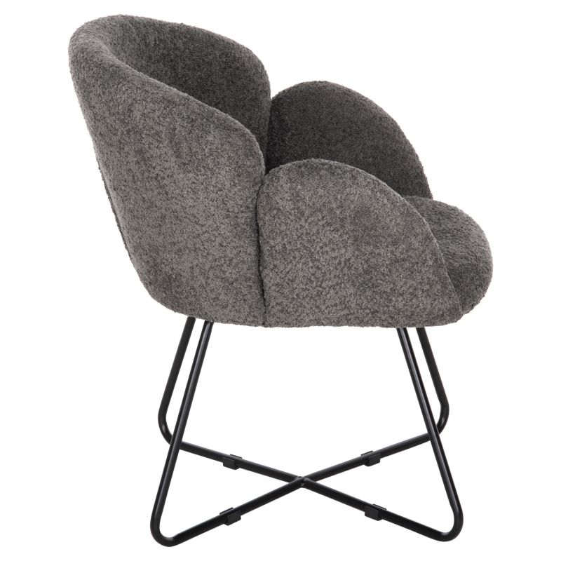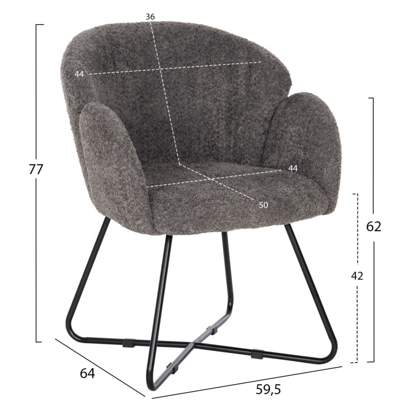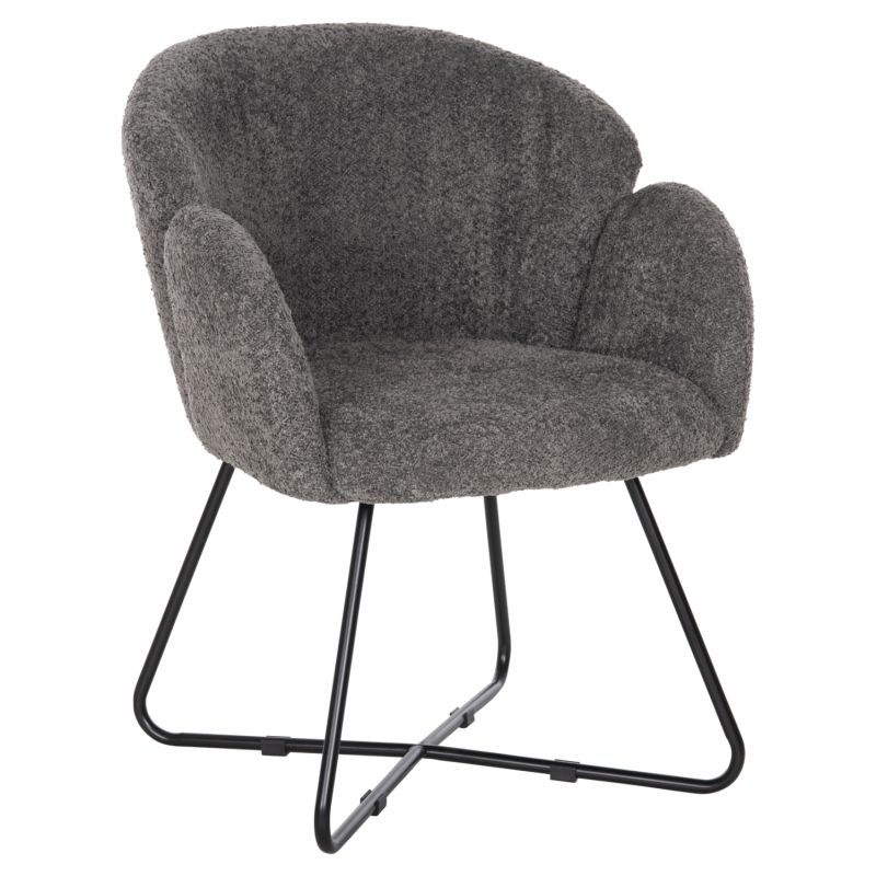 КРЕСЛО HARNIS HM9603.01 СИВО БУКЛЕ-ЧЕРНА МЕТАЛНА ОСНОВА 59,5x64x77Hcm.