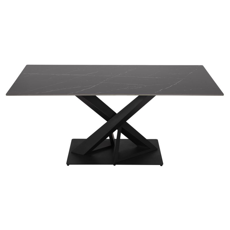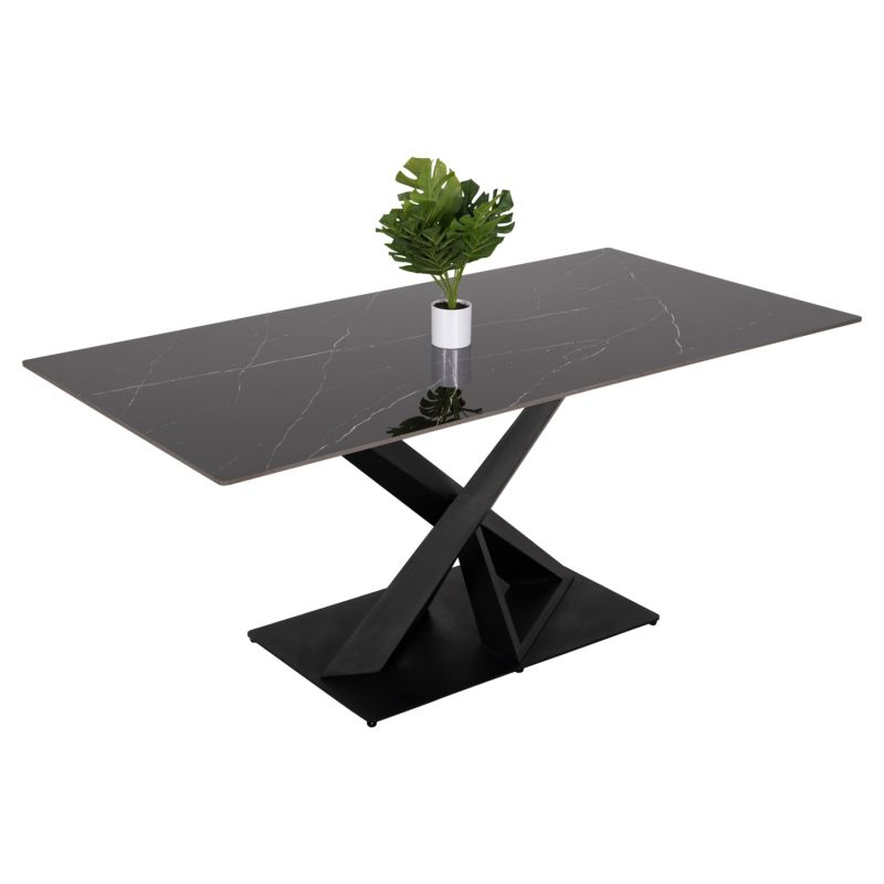ТРАПЕЗНА МАСА ПРАВОЪГЪЛНА RUBBY HM9849.02 КЕРАМИЧЕН ПЛОТ В ЧЕРЕН МРАМОР-ЧЕРНА МЕТАЛНА ОСНОВА 180x90x77Hcm.