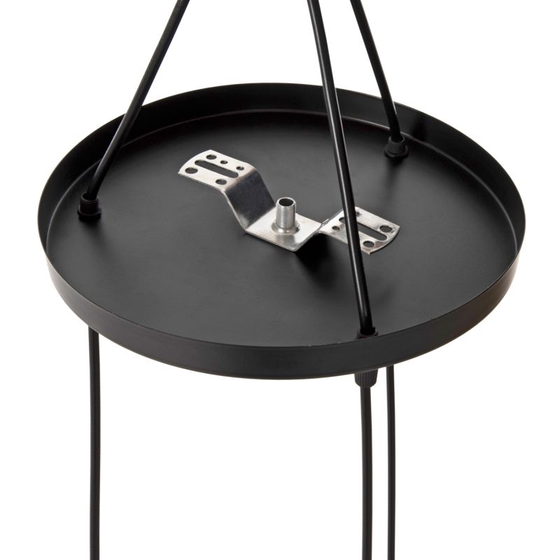 Цялото осветително тяло е изработено от метал, както и кръглата основа за окачване на тавана.