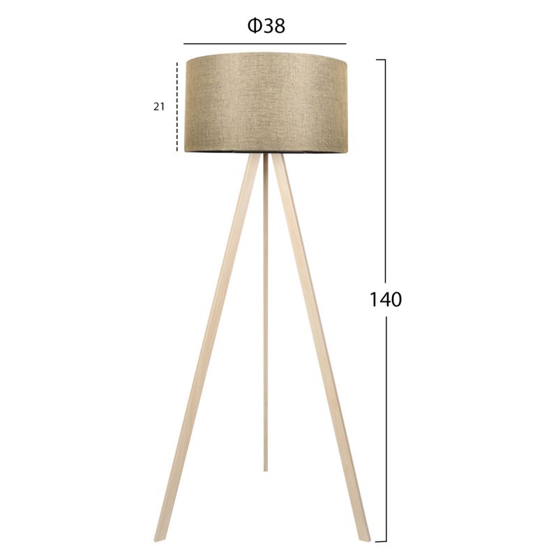 Подова лампа със статив от 100% MDF в естествен цвят. Цилиндричната "шапка" на лампата е в хипнотизиращ златисто кафяв цвят. Красива подова лампа, която ще създаде атмосферата, която винаги сте си представяли за вашето пространство, така че да можете да създадете свой собствен кът за почивка или дори декорация. Защото Светлината означава повече от просто лампа. Това означава декорация, атмосфера, изкуство, вкус и разбира се наука.