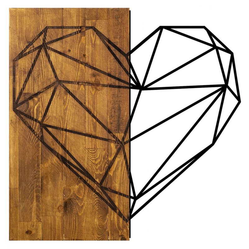 Дървена декорация за стена с черно метално сърце HM7219 58x58 см.