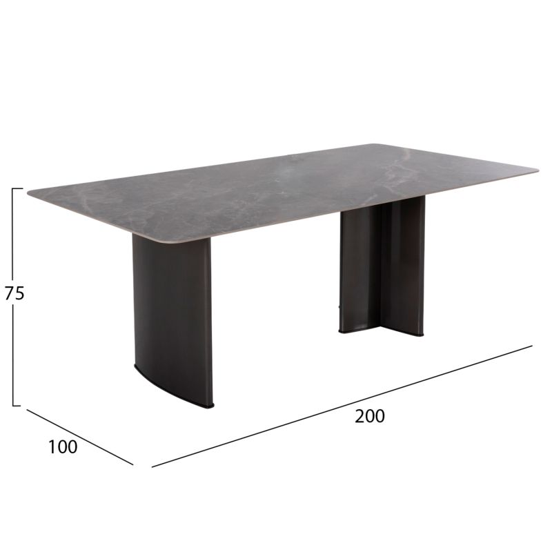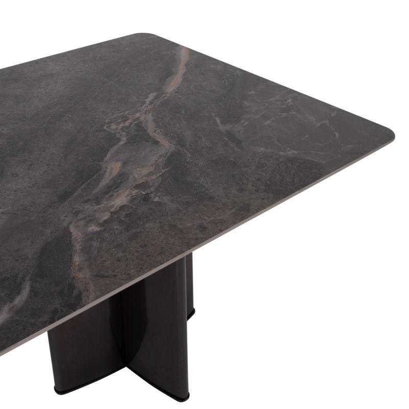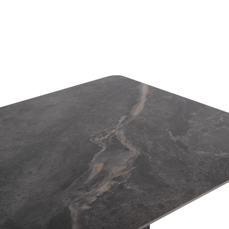 Маса: Плотът е керамичен, а краката са метални.