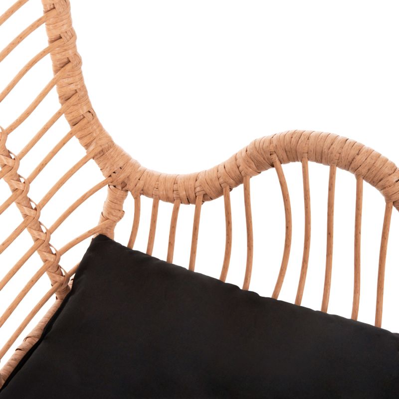 Облегалката и седалката са изработени от синтетичен ратан в ракита. В повечето градински мебели и външните мебели като цяло се използва PVC синтетичен материал, т.е. висококачествени изкуствени влакна. Това придава на конструкцията изключителна здравина и издръжливост при екстремни горещини или студени условия.