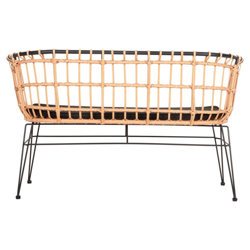 Външният 2-местен диван (пейка) от серия АЛЛЕГРА е изработен от ракита от синтетичен ратан в БЕЖОВ и ЧЕРЕН цвят и ЧЕРНА метална конструкция. Разполага с облегалка и черна седална възглавница, като характерното за него е, че металната му рамка "минава" около седалката.