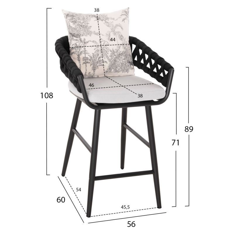 БАР СТОЛ АЛУМИНИЕВ CAMDEN HM6142.01 АНТРАЦИТ С ЕКРЮ ВЪЗГЛАВНИЦА С ЩАМП 56x60x108Hcm.