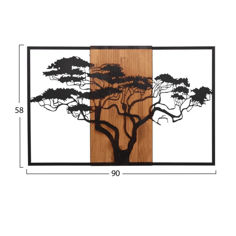 ДЪРВО ЗА ДЕКОРАЦИЯ НА СТЕНА В ЧЕРНА РАМКА ΗΜ4650-МЕТАЛ-ДЪРВО 90x3(дебелина)x58Hcm.