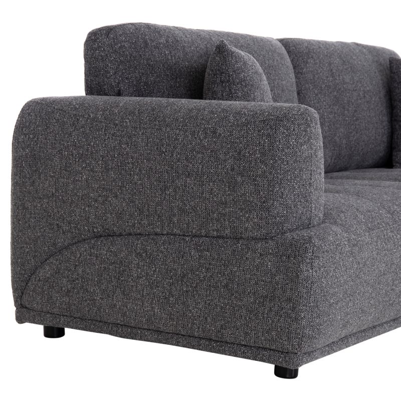 Диванът STRUCTO е елегантен и вечен избор за модерни жилищни пространства. Неговият семпъл, но внушителен дизайн, с изчистени линии и високи, широки подлакътници, създава усещане за комфорт и баланс в пространството. Тапицерията с висококачествен релефен плат в СИВ нюанс предлага модерна естетика и лесно се съчетава с различни стилове на декорация. Щедрите му размери осигуряват удобно сядане за трима души, а двете декоративни възглавници идеално допълват външния вид и комфорта.