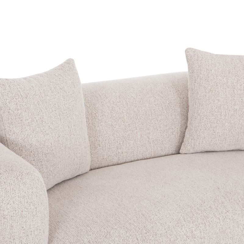 Двуместен диван в минималистичен дизайн със светлобежова текстурирана материя. Двуместният диван Арктис е олицетворение на съвременния минимализъм. С характерните си органични извивки и единичната облегалка, която обгръща тялото, той предлага усещане за лукс и спокойствие във вашата всекидневна. Тапицерията, изработена от висококачествена светлобежова материя със специална текстура, добавя дълбочина и характер, което прави Арктис централният елемент на всеки модерен дом.Основни характеристики и размери:
