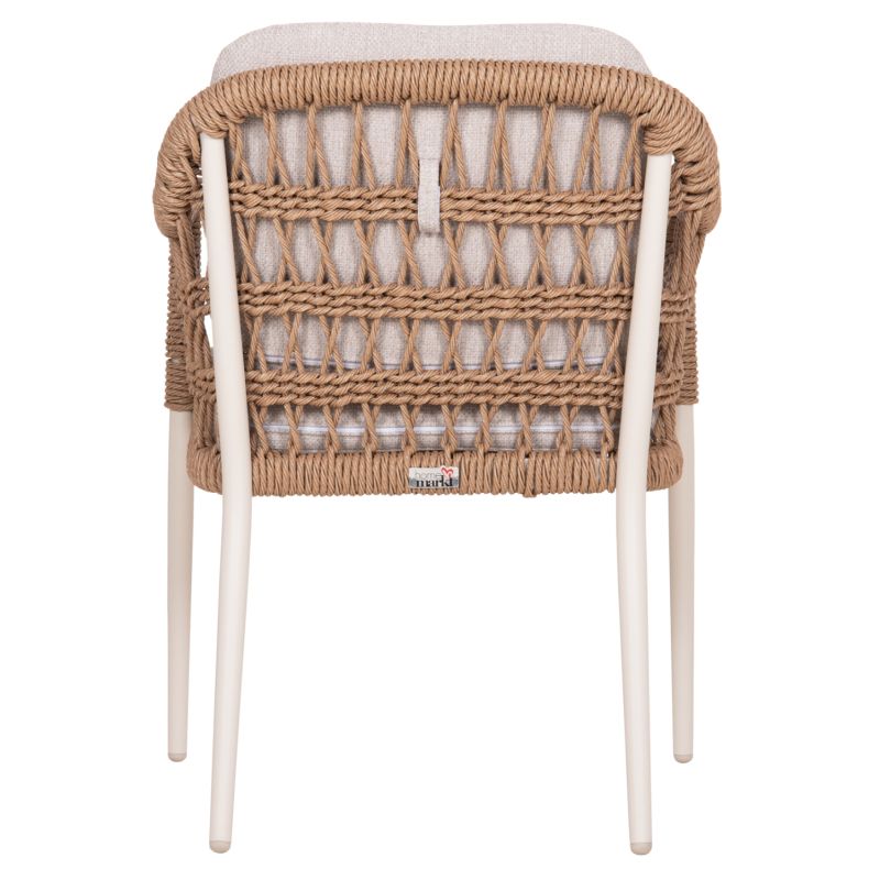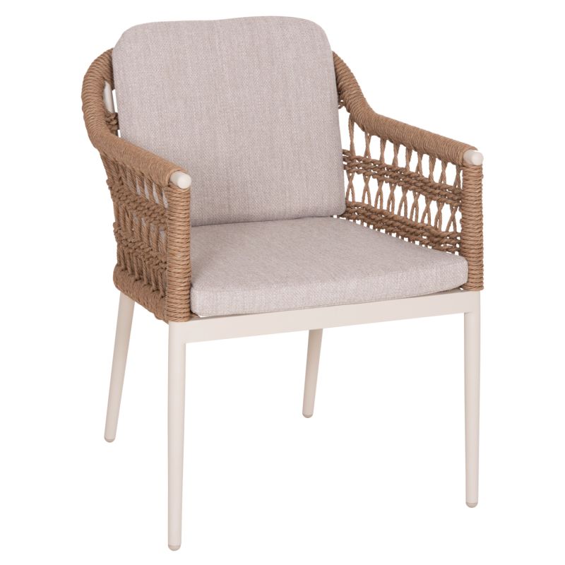 Градински стол Боксер от алуминий и плетен ратан. Подобрете естетиката на вашата градина или тераса с трапезния стол Боксер. Уникалната комбинация от здрава алуминиева рамка в светло бежово с елегантното тъкане на 7 мм плетен ратан в естествен нюанс създава резултат, който балансира между модерен индустриален и вечен бохемски стил.