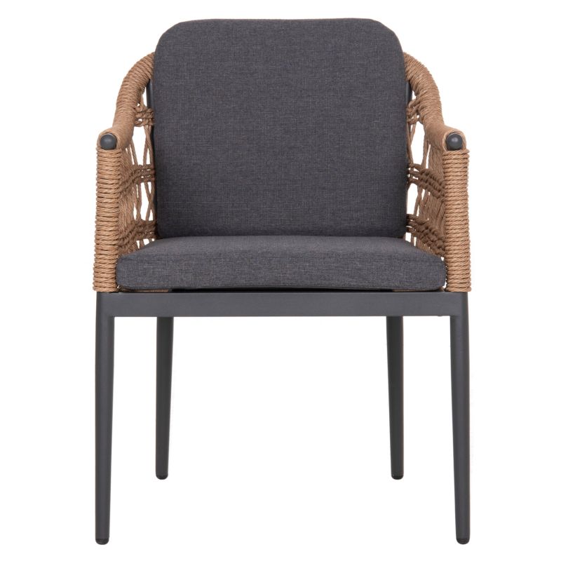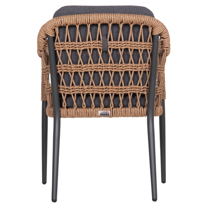 Градински стол от алуминий и плетен ратан. Подобрете естетиката на вашата градина или тераса с трапезния стол Боксер. Уникалната комбинация от здрава алуминиева рамка в антрацитено сиво с елегантното тъкане на 7 мм усукан ратан в естествен нюанс създава резултат, който балансира между модерен индустриален и вечен бохемски стил.