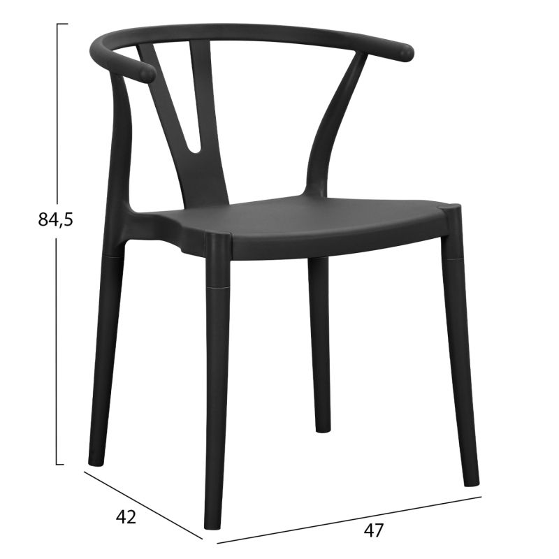 Градински стол за хранене BRAVE - от полипропилен в черно 47x42x84.5 см